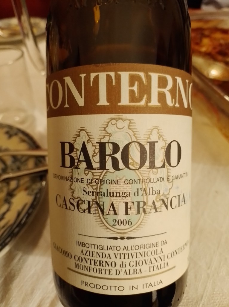 2006: amarene, funghi secchi, arancia rossa e una bella nota balsamica. Sorso di ottima freschezza, forse meno stratificazione del 2008 ma la bevibilità è notevole e il tannino splendidamente risolto. Elegante.