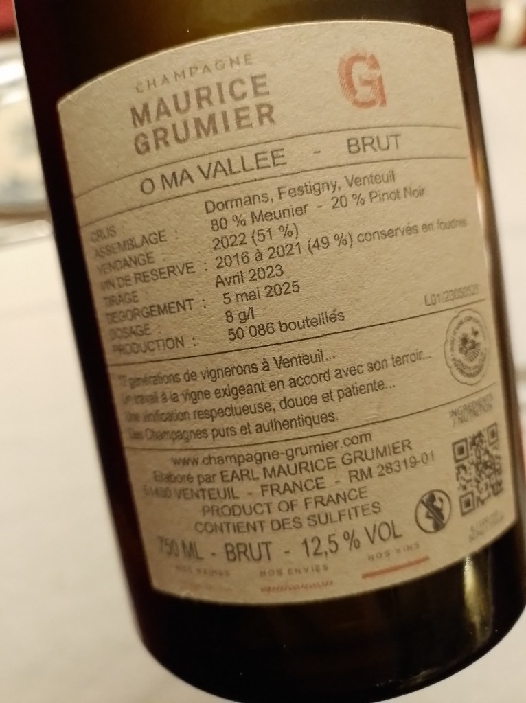 Champagne “Ô ma Vallée” Blanc de Noirs brut – Maurice Grumier