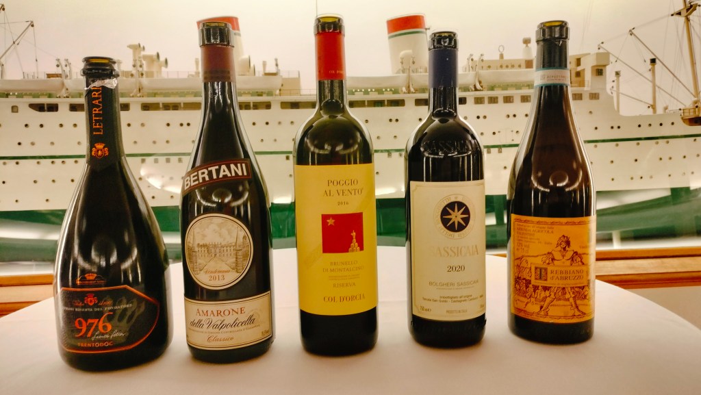 4. Bertani – Amarone della Valpolicella Classico DOCG 2013; il terzo vino rosso in degustazione presenta a differenza dei primi due un colore rubino che già vira sul granato, con i suoi 96 mesi di affinamento in legno e una lunghissima sosta in bottiglia. Grande opulenza al naso (pot-pourri, ciliegia sotto spirito, curcuma, cioccolatino after-eight, liquerizia, funghi secchi) e altrettanta, se non maggiore, morbidezza e rotondità in bocca.