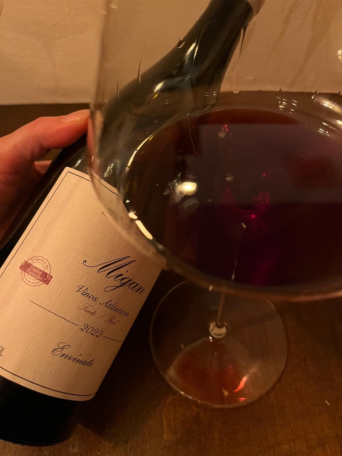 La curiosità di assaggiare un vino di Envinate è stata finalmente colmata grazie ad Migan 2022, un vino dell’isola di Tenerife ottenuto da due parcelle di listán negro allevate con il tradizionale metodo del cordón trenzado (viti intrecciate). La maggior parte delle uve è pressata a grappolo intero. La massa fermenta in grandi tini di cemento, poi in botti di rovere francesi dove svolge la fermentazione malolattica per poi affinare 11 mesi in botti grandi.