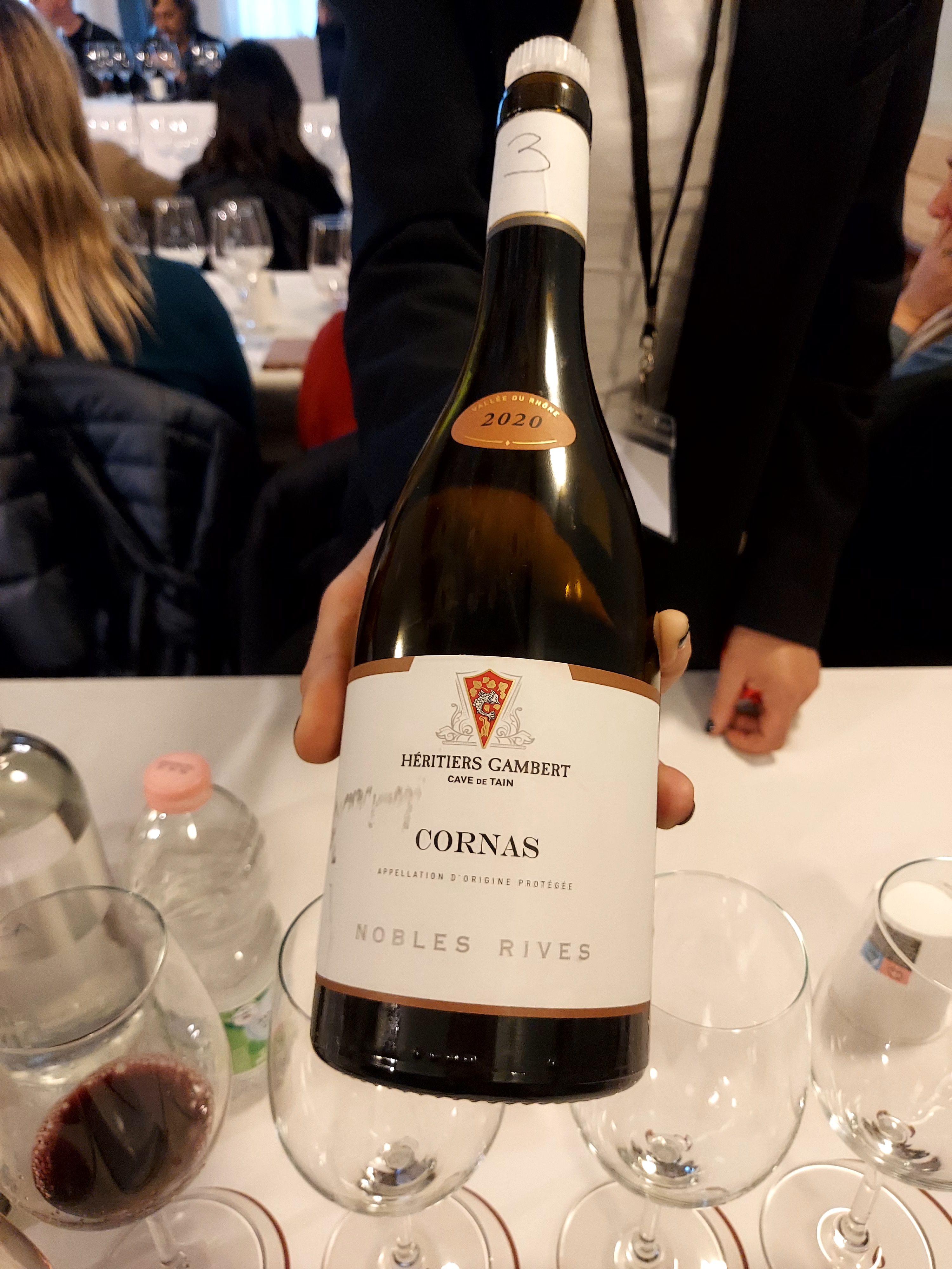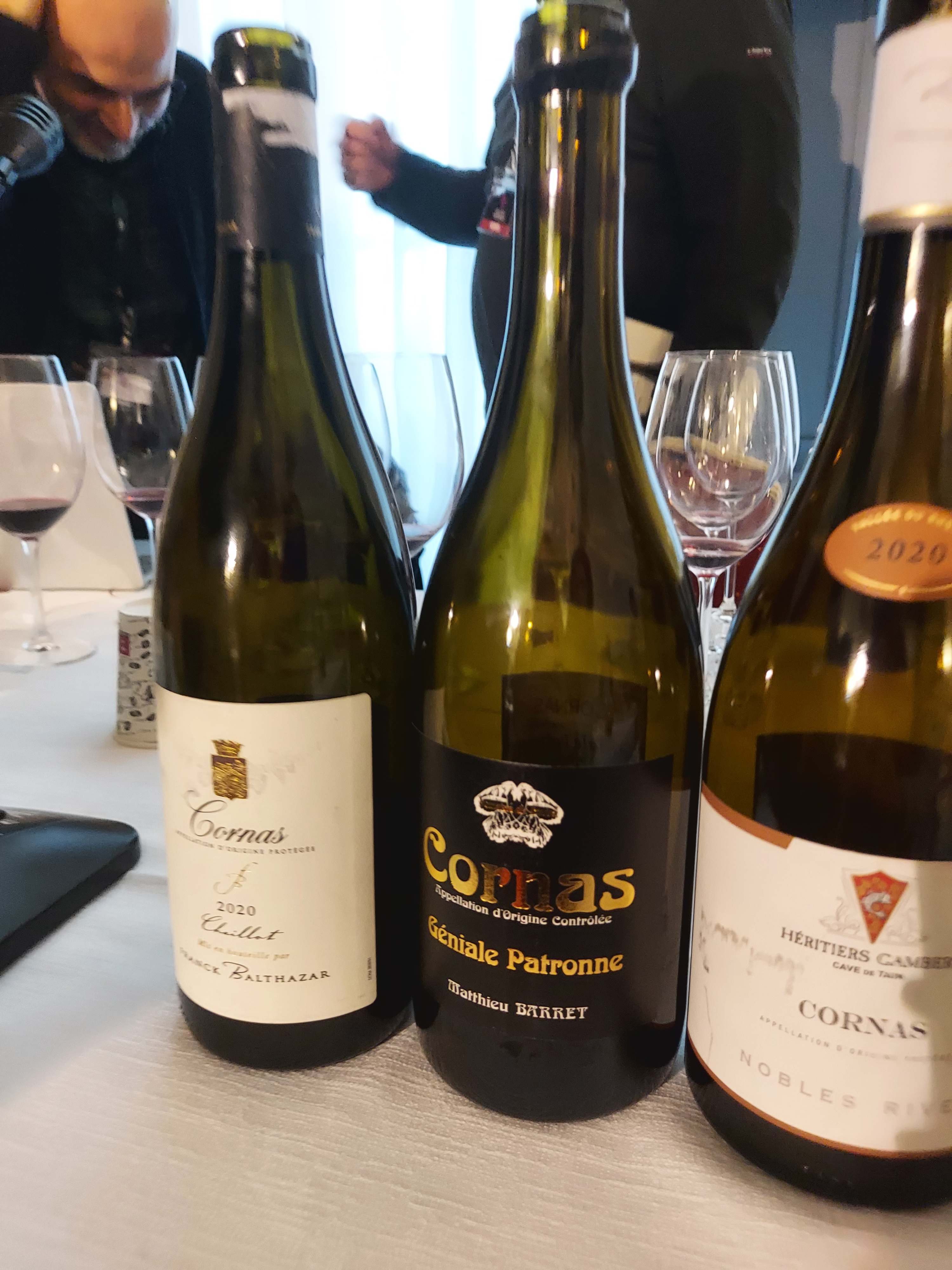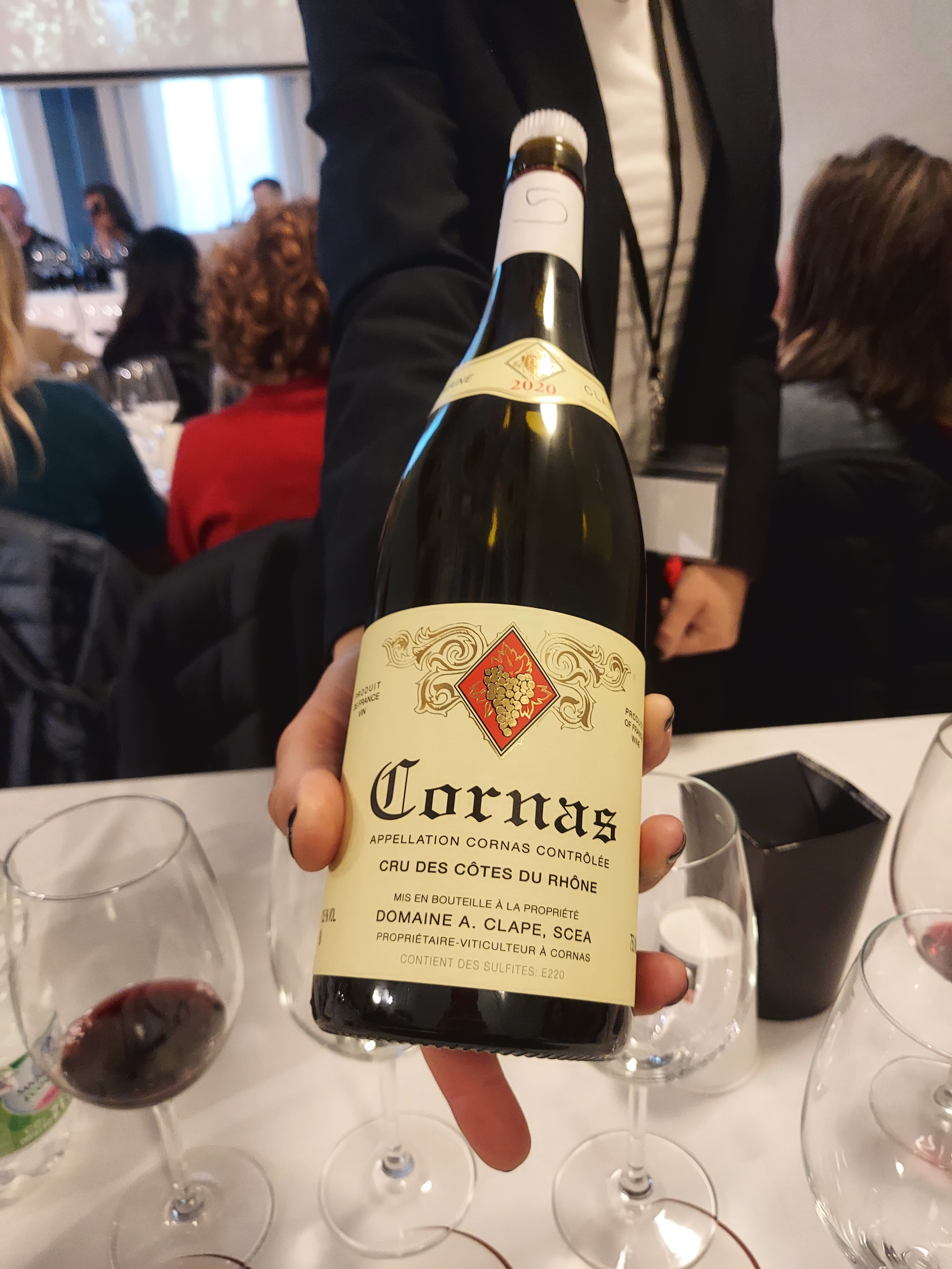 La degustazione prevedeva sette diverse interpretazioni di Cornas dell’annata 2020, millesimo indiscutibilmente caldo e precoce, ma al tempo stesso incredibilmente equilibrato. Durante la masterclass i relatori hanno tenuto a specificare che i vini in assaggio potevano rappresentare sia un’unica vigna, sia un blend di diversi lieu-dit, perché la tradizione rodaniana fa esprimere il vino attraverso le sfumature di diverse vigne.