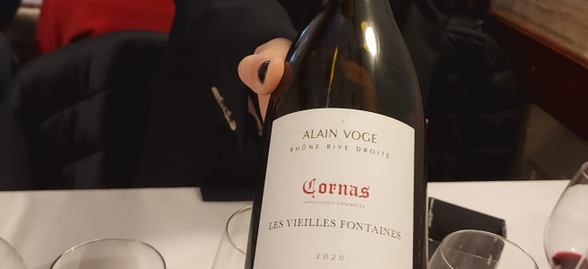 1) Franck Balthazar, Chaillot Il nome del vino si rifà al lieu-dit di provenienza. Denso, centrato su un frutto scuro e dolce, la trama tannica è ben ordita e ho apprezzato l’accelerazione in bocca che ha scongiurato ogni banalità. 2) Mathieu Barret, Géniale Patronne Blend di due lieu-dit e risultato di un lavoro biodinamico e avanguardista, che comprende macerazioni lunghe e assenza di legno. Raffinato e irriverente, sarebbe interessante portarlo a una cieca, poiché si esprime attraverso molte luci e poche ombre, sebbene dalla syrah ci si aspetti più ruvidità, un frutto molto scuro e note terragne come la grafite. 3) Cave de Tain, Nobles Rives Tain è un villaggio ai piedi di Hermitage, e questa è una cantina sociale che ha messo in bottiglia un vino di tutto rispetto. 4) Maison Chapoutier, Les Arènes Interessante assaggiare in batteria una maison de négoce. Quando visitai Chapoutier, fui colpita da un’impronta del legno molto profonda su quasi tutti i vini. A quanto pare le scelte stilistiche hanno totalmente cambiato direzione, poiché questo vino è stato realizzato in cemento. 5) A. Clape, Cornas Clape è il re indiscusso della denominazione, fedele tradizionalista, il cui vino, a differenza di quello di Barret, si concede solo dopo almeno dieci anni di invecchiamento. Al naso emerge subito una nota pungente che evoca la resina, seguita da accenti di pepe, alloro e geranio. Finalmente riesco a individuare l’oliva nera, che fino a poco prima pensavo fosse il tratto distintivo di Cornas, ma che in effetti, nella degustazione dedicata alla denominazione, ho rilevato solo in questo vino. Il sorso è pieno, con un tannino tanto fitto quanto raffinato, ancora molto scalpitante, quasi da masticare per la sua tridimensionalità. 6) Jacques Lemenicier, Père Laurier Proveniente dal lieu-dit Les Mazards, di cui – come il Clos St. Jacques in Borgogna – ogni produttore possiede una parte bassa, una mediana ed una alta della collina, attingendo quindi a suoli diversi. Il vino è fresco, persistente, tuttavia sovrastato da una suggestione di spezia dolce data dal legno. 7) Alain Voge, Les Vieilles Fontaines Grande rivelazione della giornata, non solo per il piacere di aver conosciuto il managing director Lionel Fraisse. La Fontaine si trova in una posizione centrale nella denominazione, e la morfologia della collina si rivolge verso varie esposizioni. Questo vino possiede una finezza rara. Come primo sentore ho riconosciuto il mirtillo, ma dopo poco ho percepito qualcosa di familiare, che mescola la viola alla mora di gelso, un aroma che solitamente riconosco nei grandi vini della Côte-Rôtie. Ho potuto scambiare due parole con Lionel al suo banchetto, circondato da altre espressioni di syrah di Cortona e del mondo. Qui presentava Les Chailles 2021, Les Vieilles Vignes 2021 (ovvero Les Fontaines assieme ad altre parcelle nelle annate in cui non esce come vigna singola), e Chapelle Saint Pierre 2021. Così si riconferma l’eccellenza qualitativa che contraddistingue questo domaine, tanto che non vedo l’ora di tornare a Cornas per poter fare una visita in cantina.