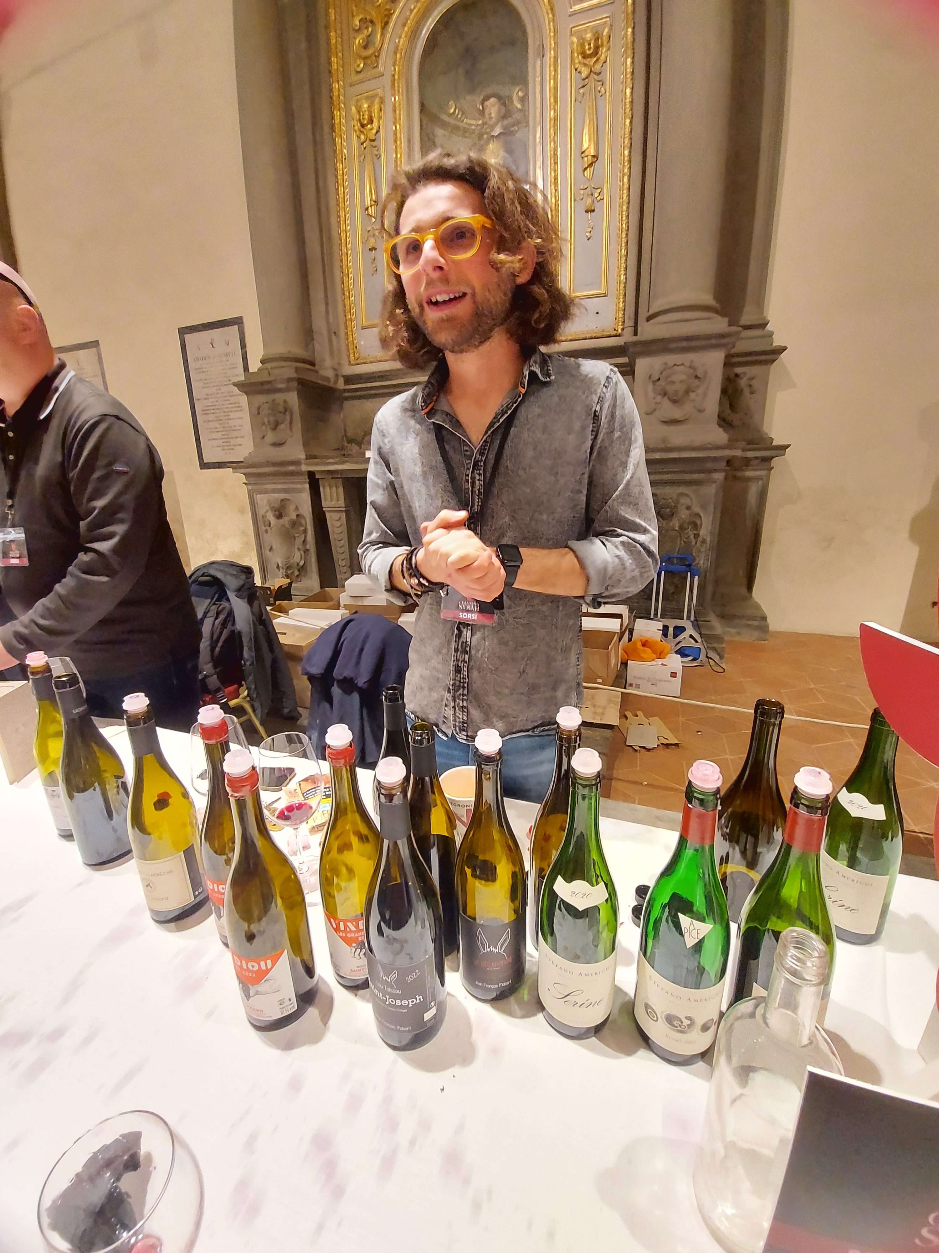 Spinta dalla curiosità e dalla sete, mi sono fatta guidare da Francesco Beligni, brillante e giovane braccio destro di Stefano Amerighi, per l’occasione hanno deciso di proporre altre bottiglie oltre a quelle della loro cantina. Questo dettaglio dice molto sulla mentalità aperta di queste persone, che assieme al talento è, a mio parere, la chiave del loro successo. Tra i vini della denominazione di Saint Joseph, ho ritrovato Pierre Gonon, assieme ad altri esponenti delle nuove generazioni, come Jean François Malsert, Thomas et Cyprien, il Domaine de la Sarbèche. Per terminare la degustazione di Cornas ho assaggiato la 2019 di Cuchet-Beliando, vino estremamente balsamico. Non potevo poi lasciarmi sfuggire un assaggio dei vini di Amerighi, in particolare di Apice 2020 e La Serine2020, che prende il nome da una specifica selezione massale tipica della Côte-Rôtie.