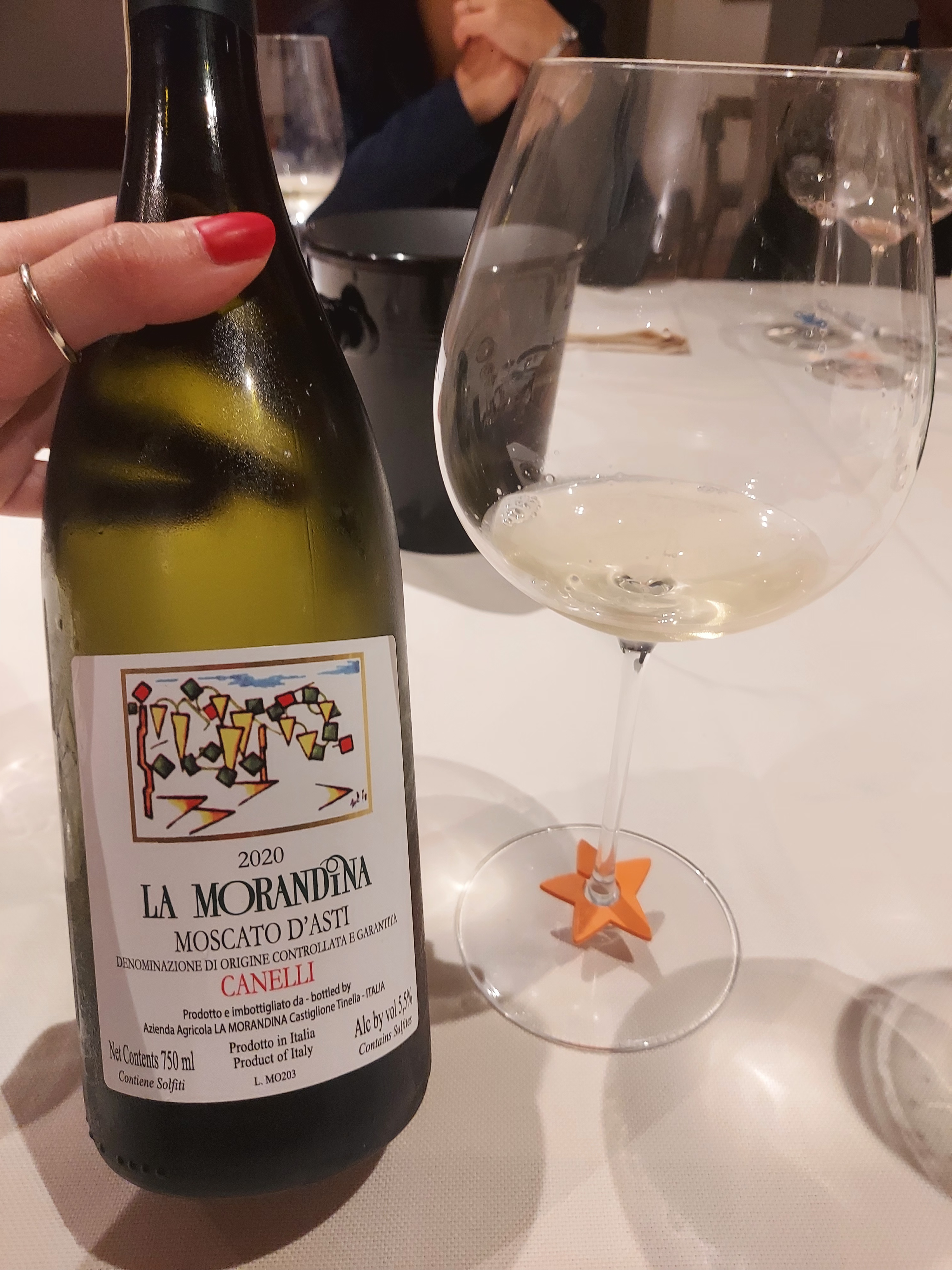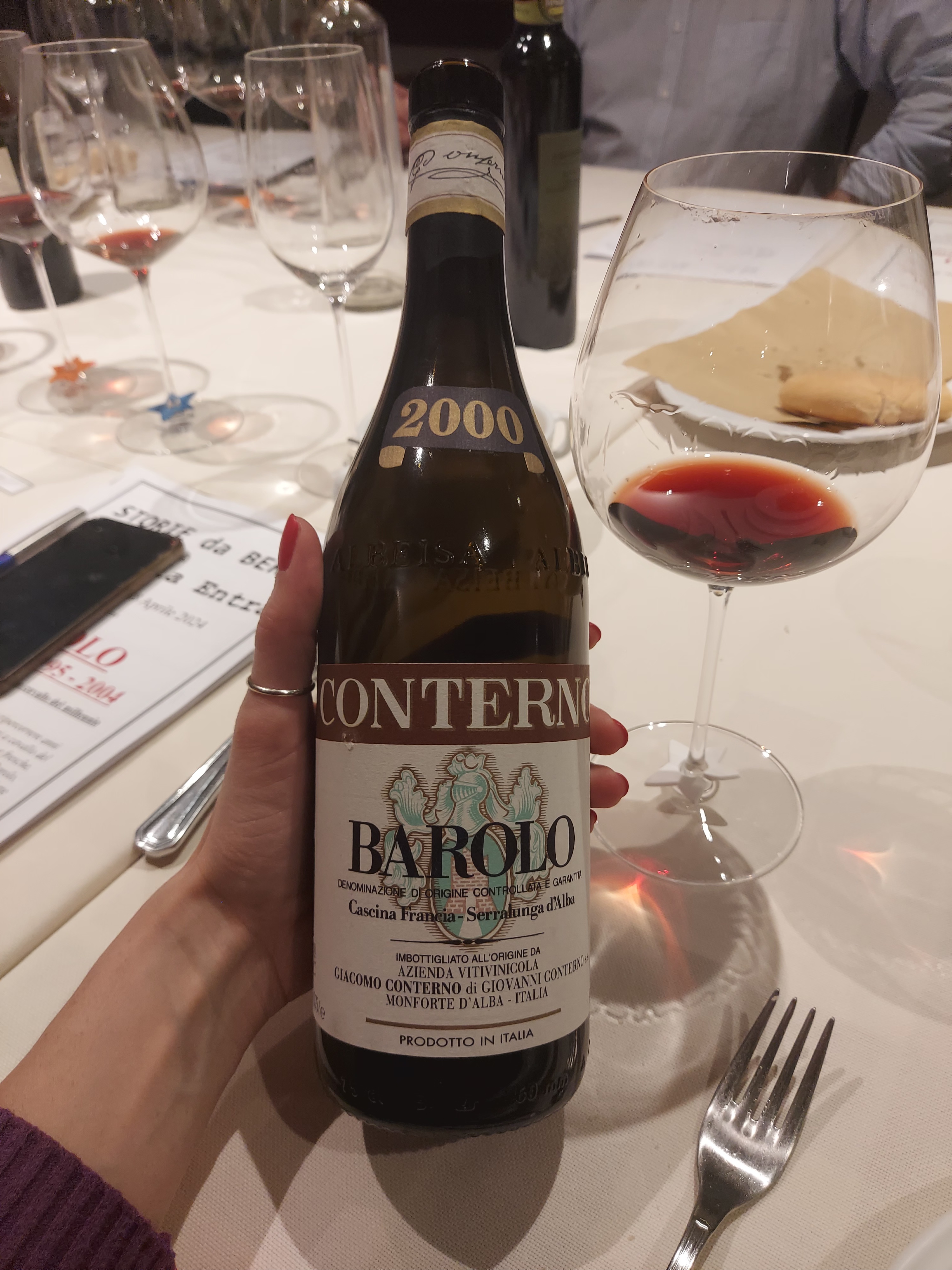 Abbiamo terminato la serata con altre due scoperte interessanti: Retzstadter Langenberg, Silvaner 1990 Spätlese, la cui evoluzione vira in note molto simili a quelle del riesling, e infine La Morandina, Moscato d’Asti 2020, perfetto con la crostata di amarene. A essere sincera ho trascurato i vini dolci, per rivisitare nuovamente alcune delle straordinarie bottiglie di Barolo, in modo da imprimere il più possibile nella mente il ricordo di questa serata prodigiosa.