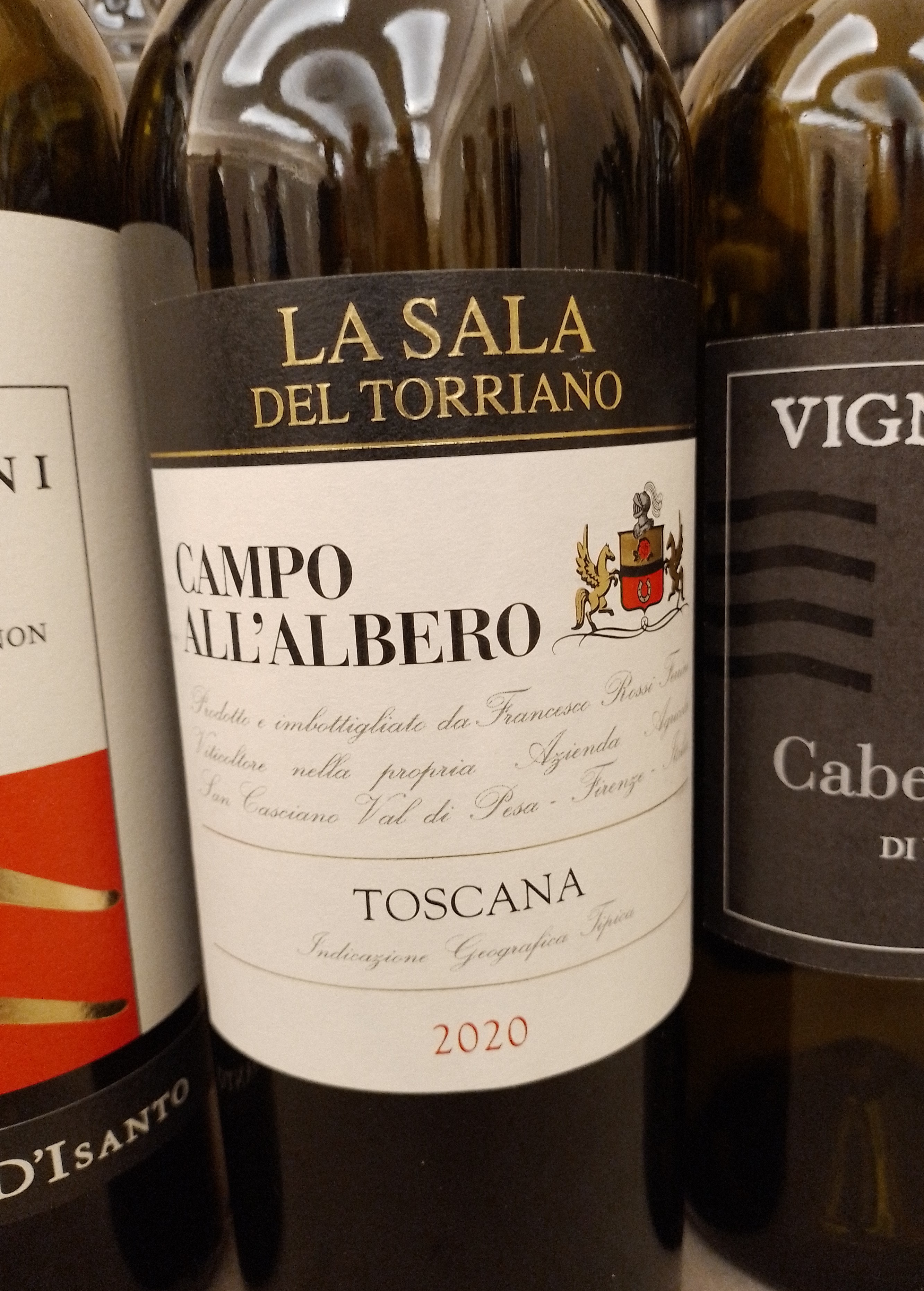 Campo all’Albero Toscana Rosso IGT 2020 – La Sala del Torriano: azienda nota anche per i suoi Chianti Classico, presenta in degustazione il Campo all’Albero, merlot (70%) e cabernet sauvignon (30%), 18 mesi di affinamento in barrique. Confettura di ciliegie, mirtillo, caffè, note balsamiche al naso, morbido in ingresso in bocca con un tannino fitto e saporito che fornisce grip e dinamica, la chiusura è sapida e lunga. Un vino che potrà evolvere e migliorare ancora.