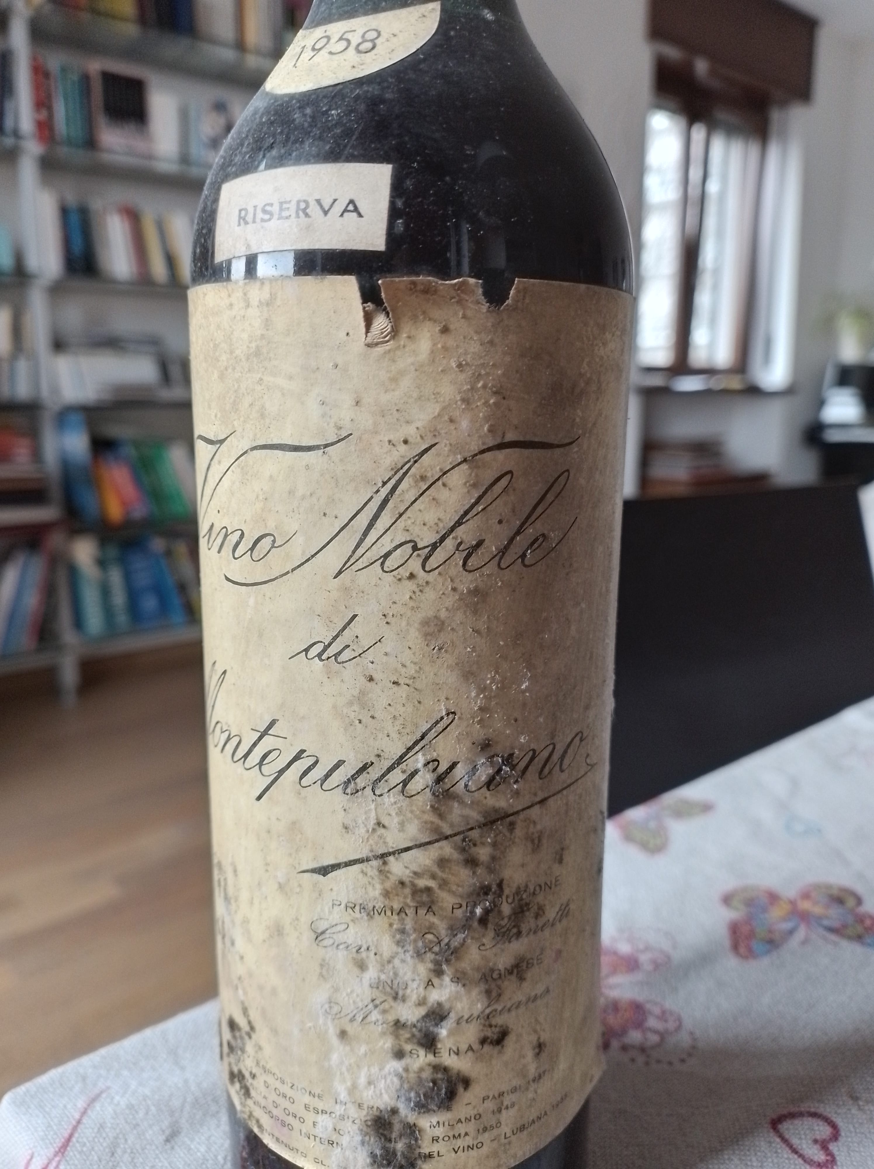 Vino Nobile di Montepulciano Riserva 1958 – Tenuta Sant’Agnese: naso evoluto ed affascinante, ancora dinamico che richiama il sottobosco, poi tartufo, corteccia, tamarindo…bocca risolta, leggera e saporita. Vive e lotta insieme a noi.