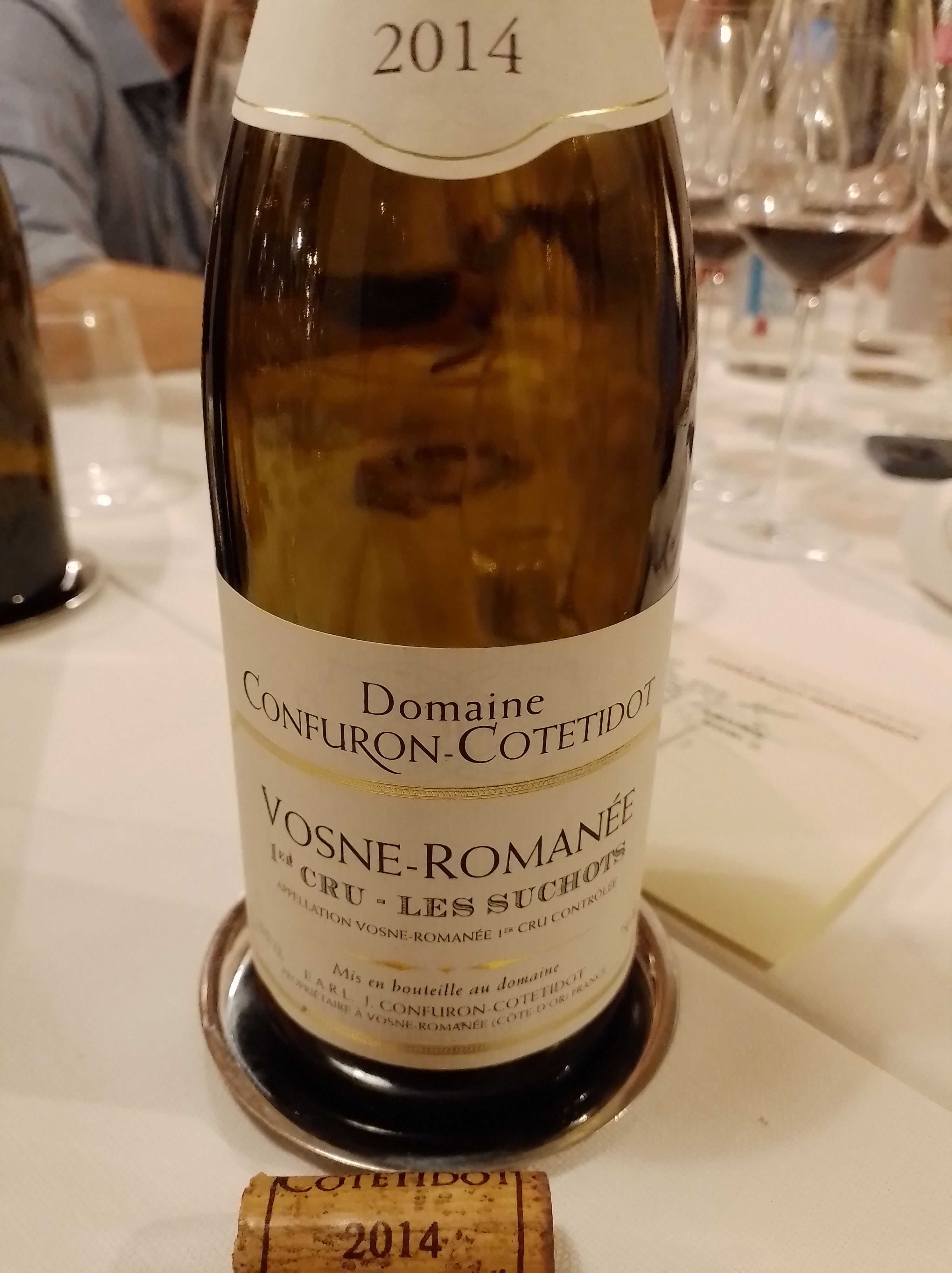 Condividiamo di seguito dunque la degustazione di cinque annate del Vosne-Romanée 1er cru Les Suchots del domaine Confuron-Cotetidot. Les Suchots è un premier cru di poco più di 13 ettari rivendicato da ben 25 aziende. L’interpretazione che ne dà il domaine Confuron-Cotetidot, come vedremo, è piuttosto lontana dall’idea di pinot noir tutto fruttini e spezie orientali, il produttore persegue infatti uno stile di vinificazione più austero fatto di uva raccolta a piena maturazione, fermentazione con raspo, macerazione prolungata, utilizzo solo di legno di secondo o terzo passaggio (quindi non legno nuovo), per vini che hanno bisogno di tempo per esprimere tutto il loro potenziale.