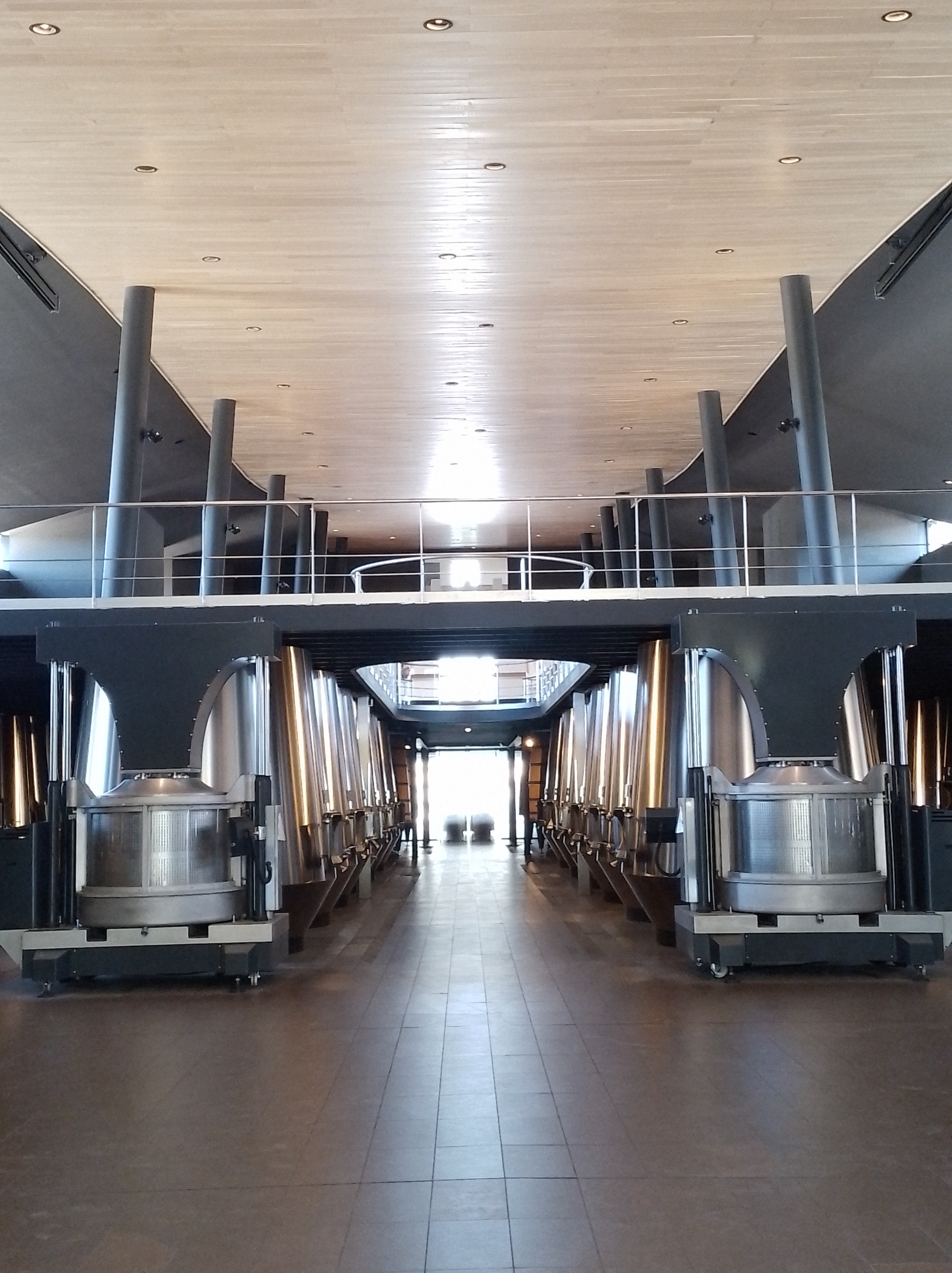 Abbiamo visitato la cantina e la sala di degustazione rinnovate nel 2021 e incastonate negli originari ambienti dello Château grazie ad una sorprendente opera di recupero architettonico. La nuova cantina si sviluppa verticalmente su tre livelli ed è amplissima e moderna; ricorda, per l’uso abbondante di vetro, acciaio e legno, una strana creatura metà piroscafo, metà astronave. Molto eleganti e luminosi gli spazi dedicati alle degustazioni con i clienti in cui siamo stati ospitati. Oltre alle foto che sotto riportiamo suggeriamo di visionare questo video per provare a camminare, seppur virtualmente, nella cantina.