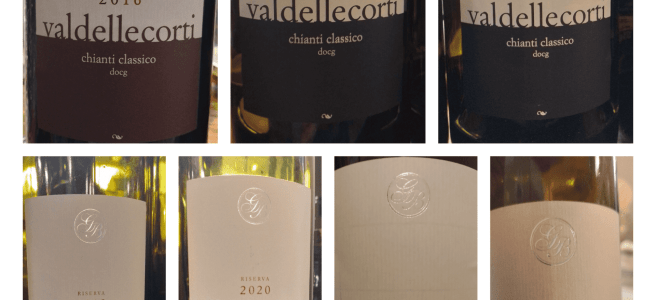 Chianti Classico Riserva 2020: la riserva di Val delle Corti esce solo nelle migliori annate con uve (100% sangiovese) selezionate dai vigneti più vecchi del podere. Fermentazione spontanea in acciaio e affinamento di 30 mesi in barriques e tonneaux usati. Il vino che abbiamo nel calice si presenta di un bel rubino chiaro luminoso, olfatto estroverso di viola e sentori agrumati (arancia), poi esce anche un frutto carnoso (susina) e una nota minerale che ricorda il gesso. Non mancano i cenni balsamici. Sorso freschissimo e dinamico, dal tannino fitto e fine e dalla chiusura lunga e sapidissima. Una grande versione buona oggi ma che spiccherà il volo tra qualche anno.