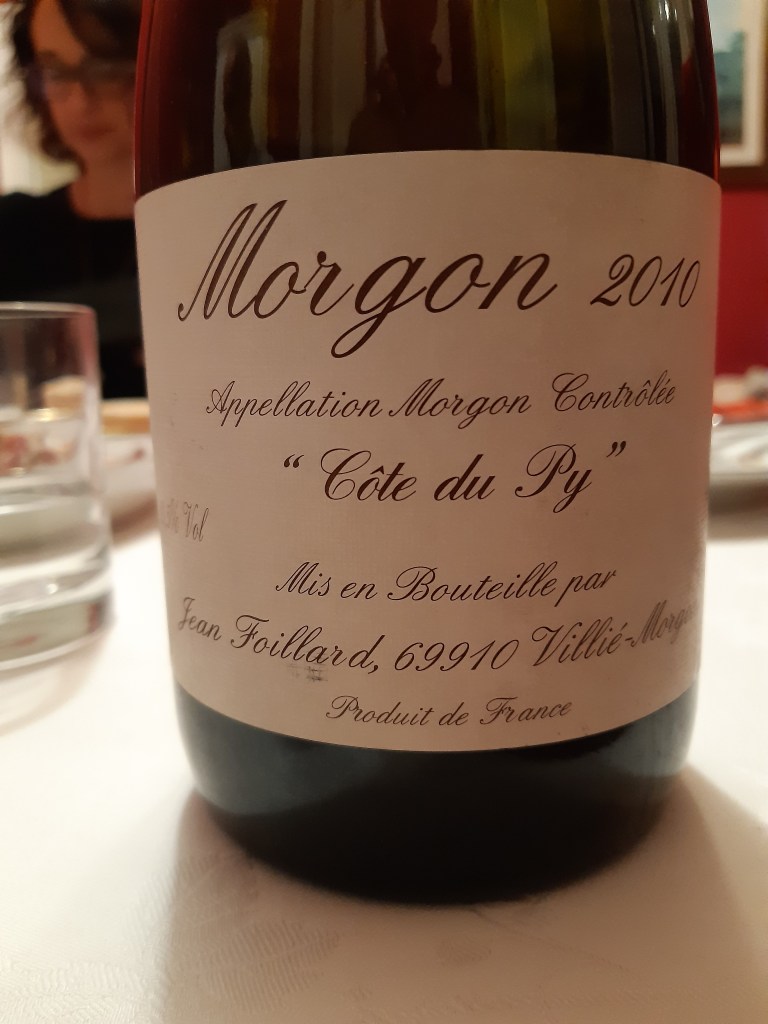 Dall’inizio degli anni ’80 Foillard è un riferimento assoluto in Beaujolais con belle vigne in Côte du Py. Bel colore rubino luminoso, con gli agrumi che aprono le danze seguiti dai fiori rossi, il pepe bianco e la cola. Vino di grande bevibilità eppur con molto da dire. La bocca è agile, certo, ma si sviluppa con grazie e sapore, sale e lieve amertume in chiusura. Decisamente lungo. Un gamay che a 10 anni dalla vendemmia è ancora pimpante e che ha lunga vita davanti a sé.