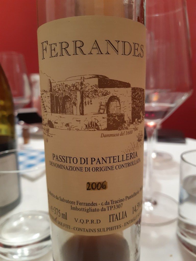 Per accompagnare un’ottima crostata con ganache al cioccolato e lamponi freschi non ci siamo fatti mancare uno stupefacente Passito di Pantelleria 2006 di Ferrandes. Vino ricco di sfumature come uva passa, scorza d’arancia, caffè, noci, erbe aromatiche, spezie…ed un sorso ricco e suadente, solare e mediterraneo. La bocca chiude agrumata e deliziosamente salata.