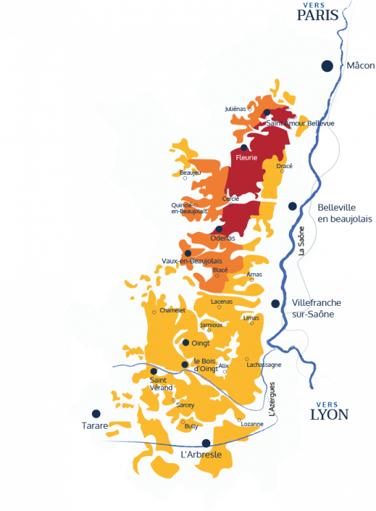La regione del Beaujolais è situata a 30 chilometri a nord di Lione e immediatamente a sud del Mâconnais. È inoltre delimitata a est dalla valle della Saône e a ovest dai Monts du Beaujolais. Il paesaggio della regione, che ho avuto modo di visitare, è entusiasmante: colline vitate ad alberello, con vigne spesso molto vecchie, si alternano a mulini e caratteristici borghi.