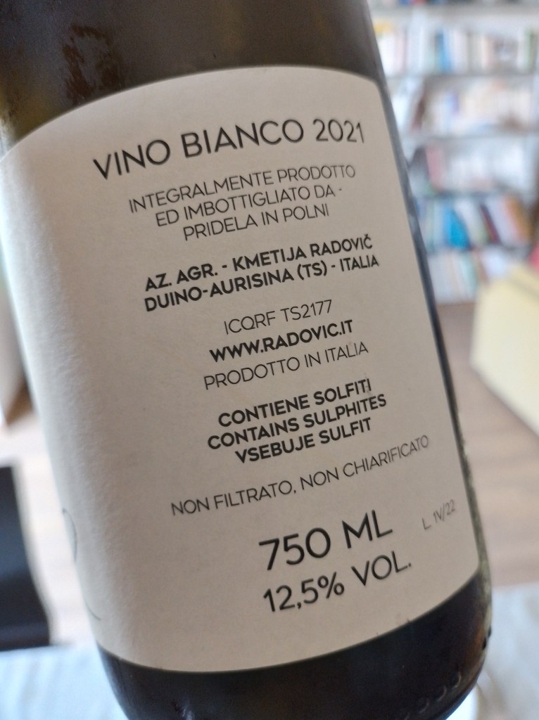 Si tratta di un “esperimento” di Peter Radovič (esperimento che ci risulta verrà replicato) che assembla tre diverse annate di terrano (2019, 2020 e 2021) e che dà vita, in questo primo tentativo, a solo 270 bottiglie. La fermentazione avviene con lieviti indigeni ed una lunga macerazione sulle bucce, quindi il vino sosta in una botte di rovere esausta.