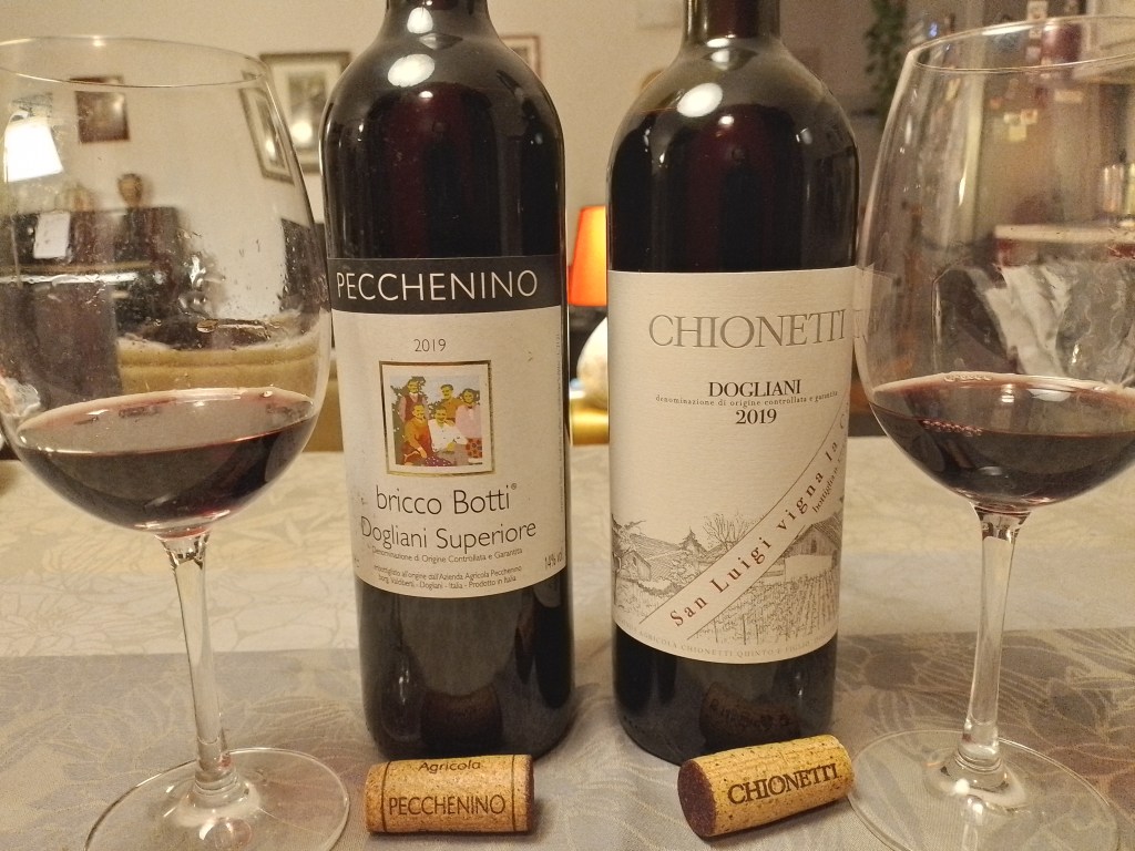 Due ottimi dolcetto, anzi, pardon, due ottimi Dogliani! I due vini che abbiamo assaggiato non ci hanno fatto rimpiangere il nostro amato nebbiolo, a Dogliani il dolcetto si esprime infatti con una complessità e un’intensità che non lo relegano di certo al ruolo di comprimario, ma che anzi ritagliano uno spazio di tutto rispetto in un’immaginaria carta dei vini langarola, soprattutto per una maggior versatilità e facilità di abbinamento gastronomico. Detto che entrambi i campioni assaggiati sono prodotti di grande qualità e sicuro interesse organolettico, non mi tiro indietro nell’esprimere la mia personale preferenza per la versione più elegantemente austera di dolcetto interpretata da Chionetti rispetto alla versione, pur molto buona, più materica e potente di Pecchenino.