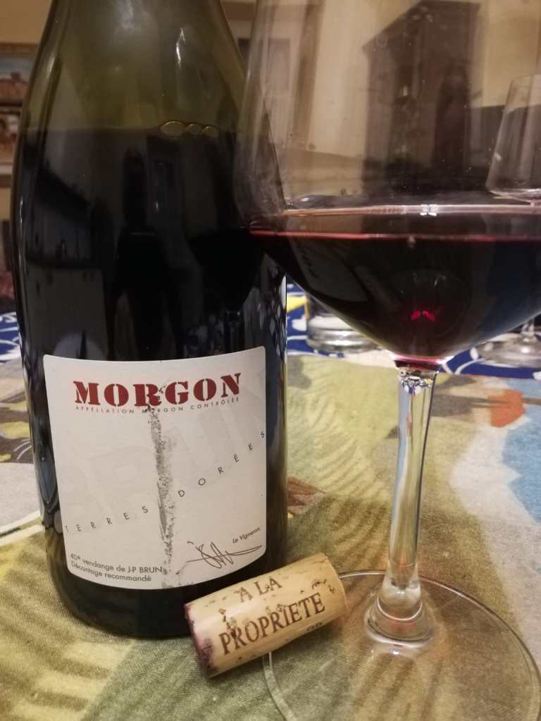Abbiamo quindi recuperato il Morgon 2018 di Terres Dorées (la 40esima vendemmia di J.P. Brun, il produttore) per iniziare a comprendere … i meriti del Morgon per farsi verbo. Gamay in purezza da vigne ad alberello di oltre 50 anni di età, a pieno titolo quindi “vielles vignes”, viene vinificato secondo lo stile borgognone: nessuna macerazione carbonica, fermentazione tradizionale e affinamento in piecés.