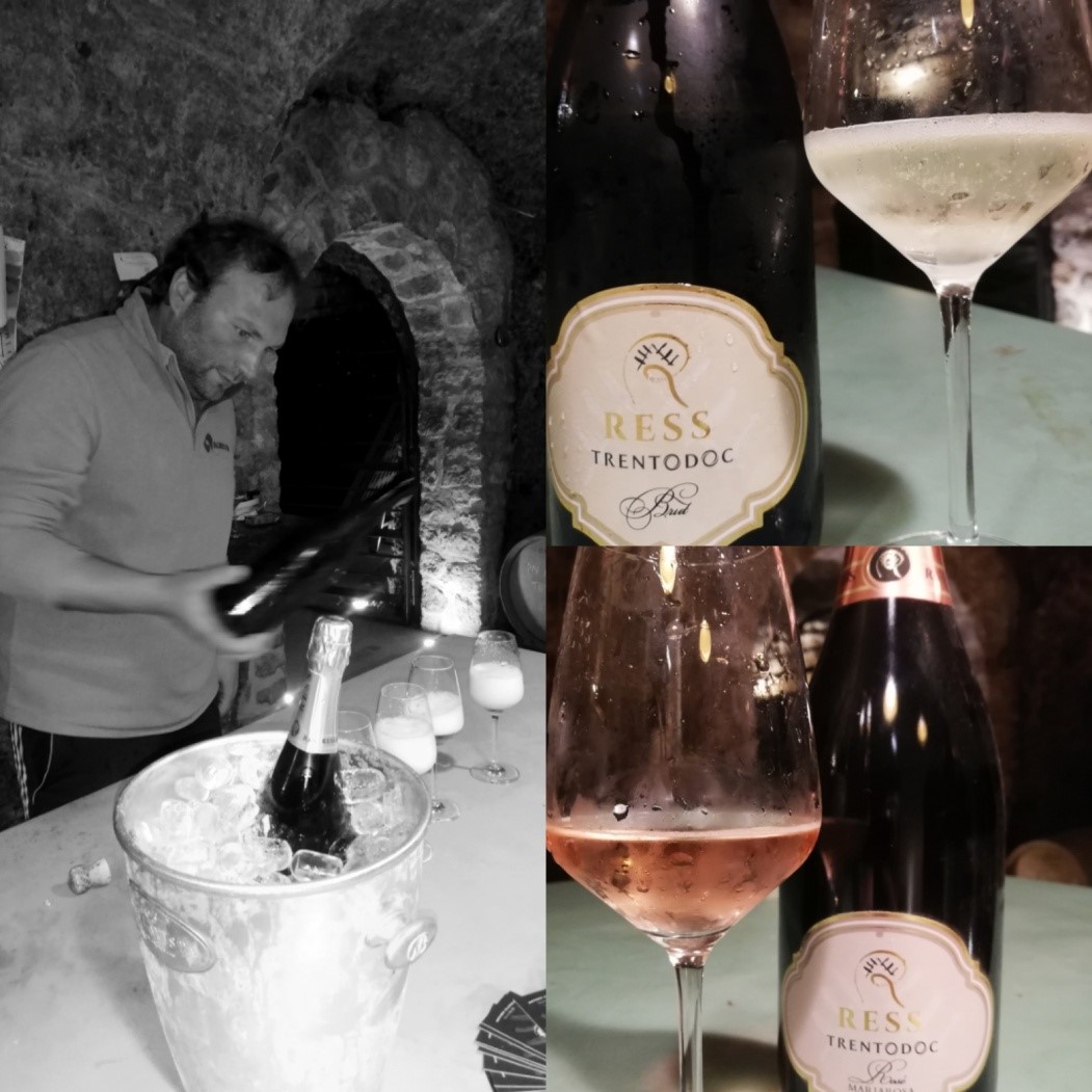 L’ultima realtà, cantina Ress, è attiva da circa un anno con due espressioni di Trento DOC: un Rosè, dedicato alla loro mamma, e un Blanc de Blancs, che abbiamo assaggiato nella loro cantina, una grotta naturale dove affinano a lungo gli stessi spumanti.